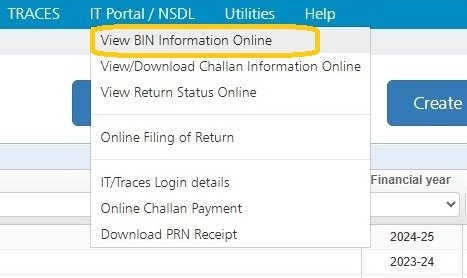 The users can view the BIN details available with the department through NSDL. This is applicable only for Government deductors who use the Book Entry option for making payments. Click on >View BIN Information Online< under > IT Portal / NSDL< menu.