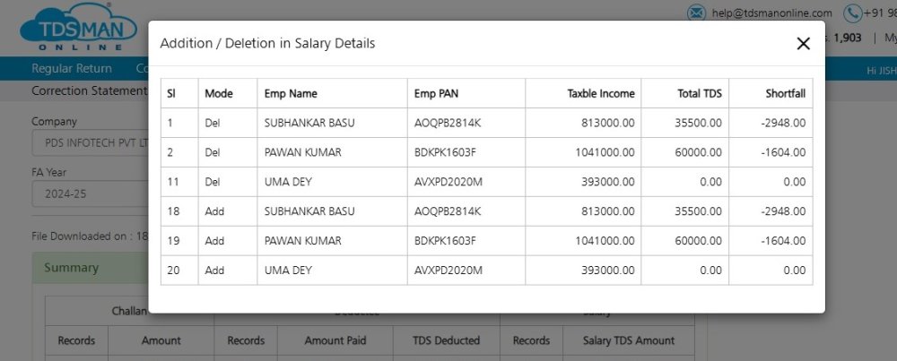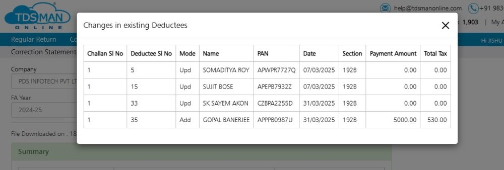 In this case there are changes in 4 deductees so it is displaying ‘4’. Click on ‘View’ the details will get displayed as shown below: