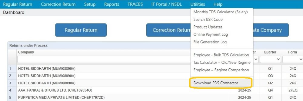 A special multi-purpose utility ‘PDSConnection1.0’ has been developed by us for the purpose of connecting and accessing the Portal for different TDS / TCS functions.