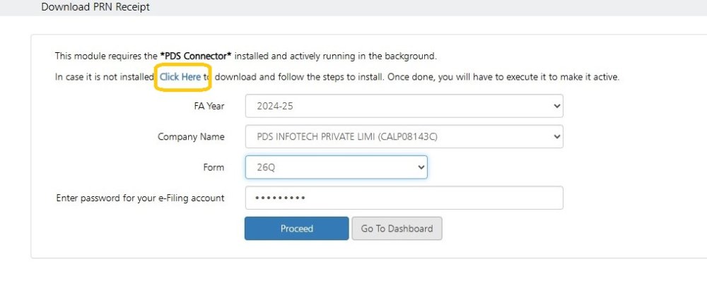 Click on ‘Click Here’ to download the ‘PDS Connector’ utility. The following screen will get displayed: