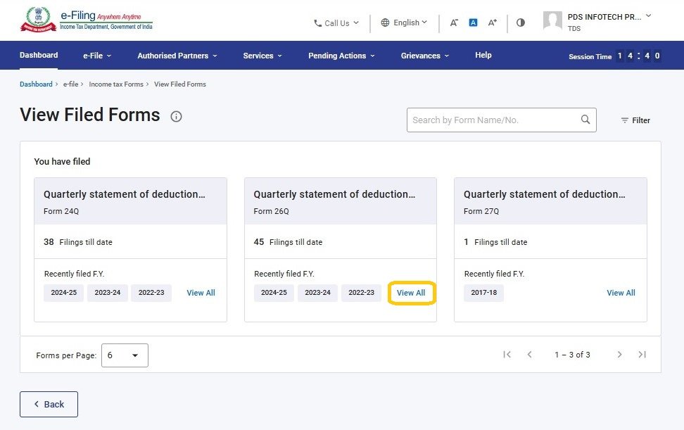 All the filings done till date, will get displayed. The required data can be selected. Click on ‘View All’.