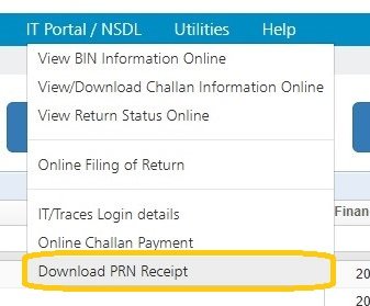 In order to Download PRN Receipt , click on ‘IT Portal / NSDL’ > ‘Download PRN Receipt’ :-