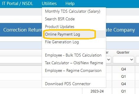 In order to view the same, click on ‘Utilities’ > ‘Online Payment Log’ :